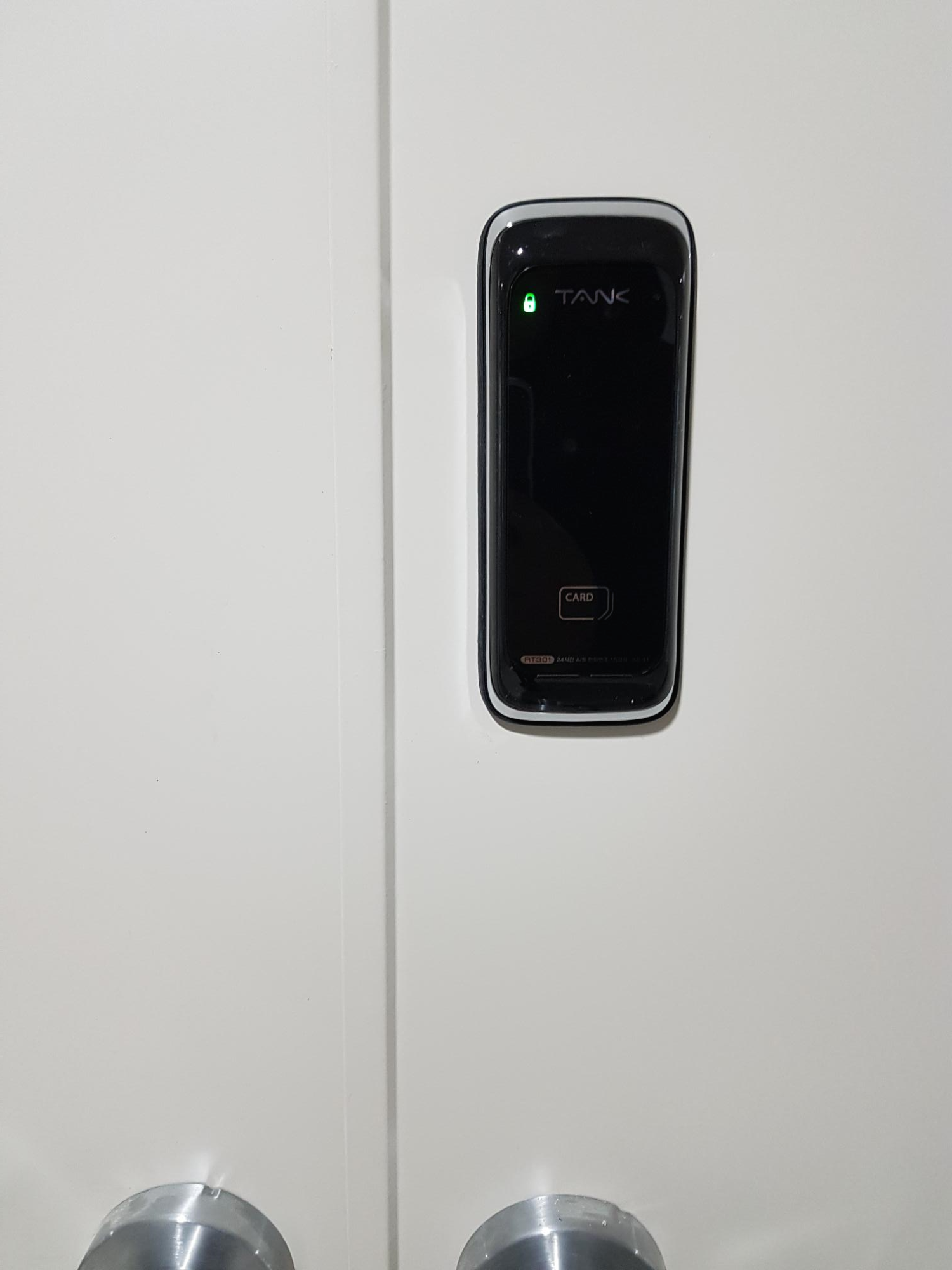 SK V1센터는 양문이었으며, 설치 제품은 혜강 TANK 제품 RT301로 번호+카드 겸용 제품입니다.