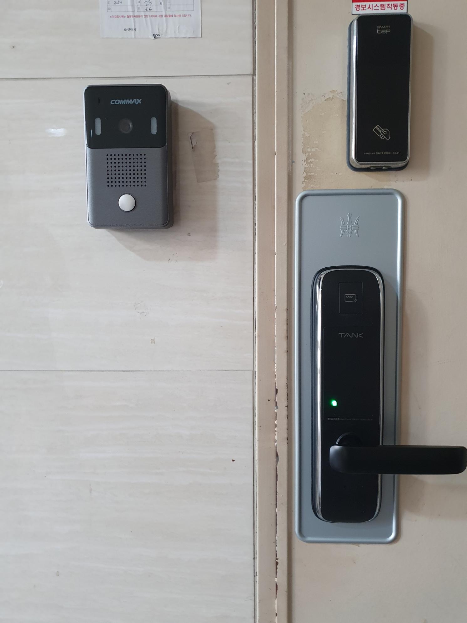 아마도 로비가 기존 현관문 강화도어에서 입구를 제어하기 위해서 국선 로비폰을 달고 출입통제 데드볼트로 통제를 하신걸로 추측을 하며, 현재 사용은 로비에서 호출시 핸드폰으로 연결되어 로비를 열어주시고 있다고 하시네요.
