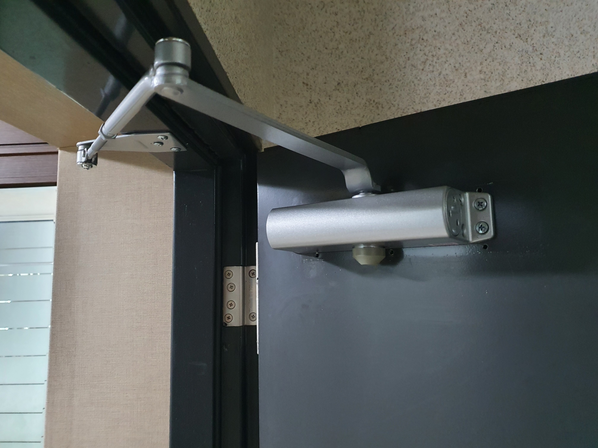 도어클러져 수명이 다되어서 도어클로져 조절을 해도 조절이 안되고 문이 쾅쾅 다친다고 하셔서 내방을 드렸습니다.