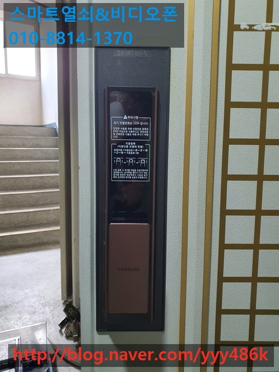 설치 후 고객님이 번호키 필름을 떼버리셨네요. (만족해 하시는 것 같네요.)