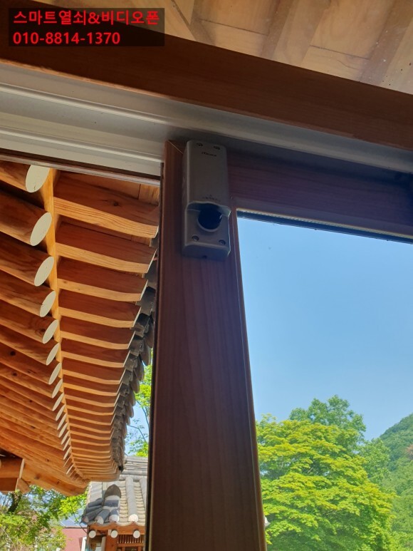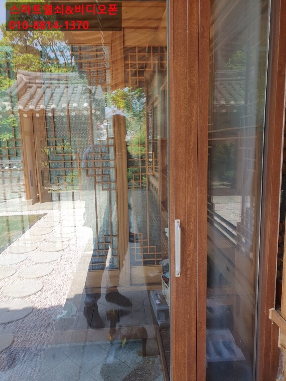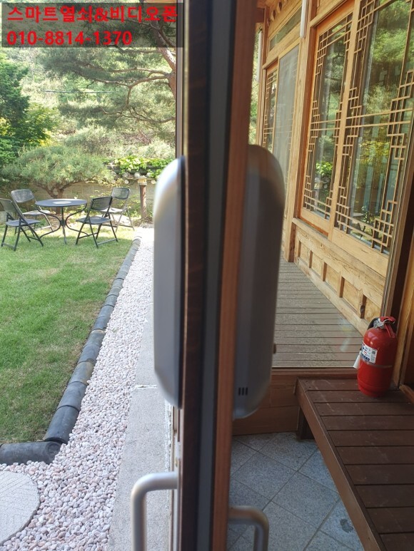 번호키의 걸쇠는 상단에 설치하고 홀스로 구멍을 샷시문 프레임 안으로 배선을