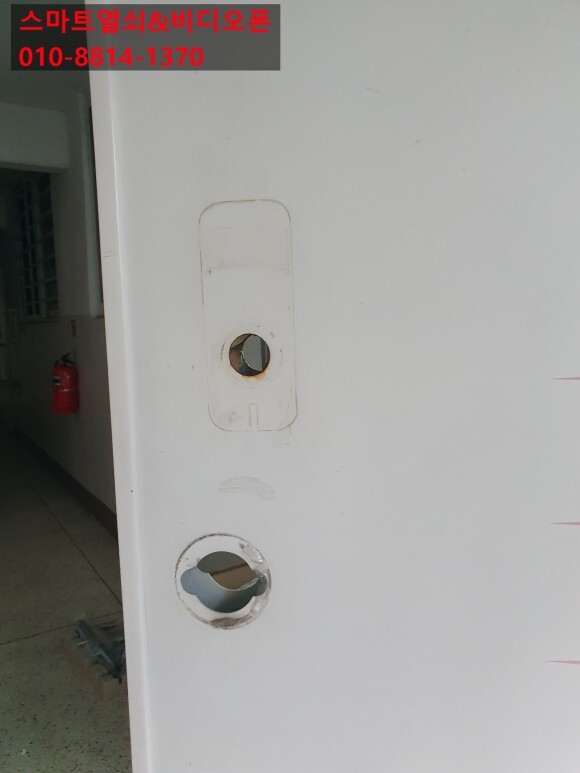 현재는 방화문 손잡이 위에 번호키를 사용하고 있는데 모두 제거 하고 심플하게