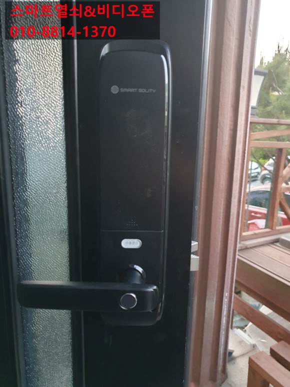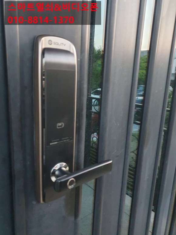 솔리티 대리점용 지문인식 레버식 제품으로 선택하셔서 설치를 진행해 드렸습니다.