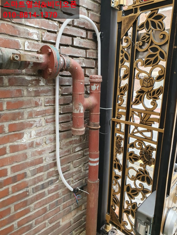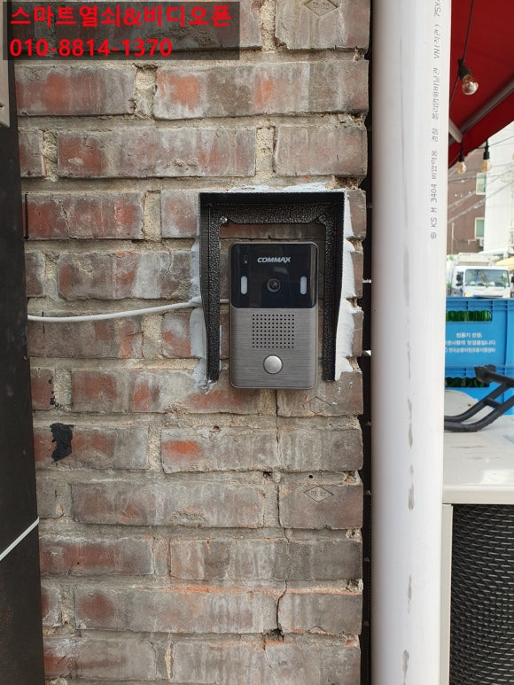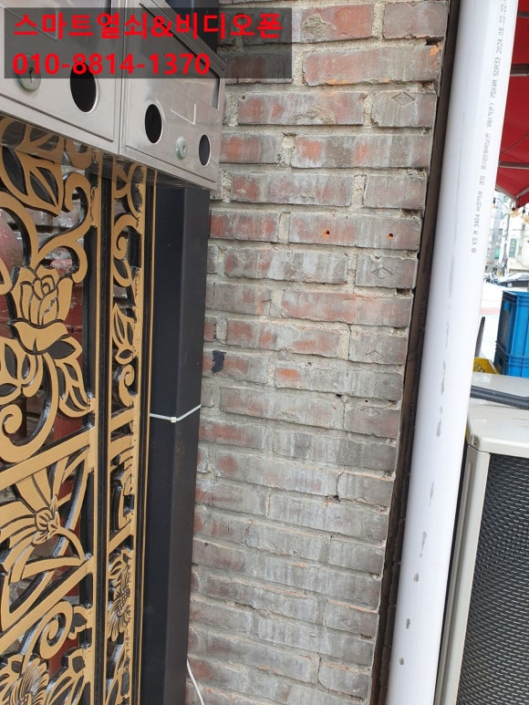 금일 설치는 명일동 빌라 대문 옆 기둥 비디오폰 설치 및 개폐기 연결 설치해