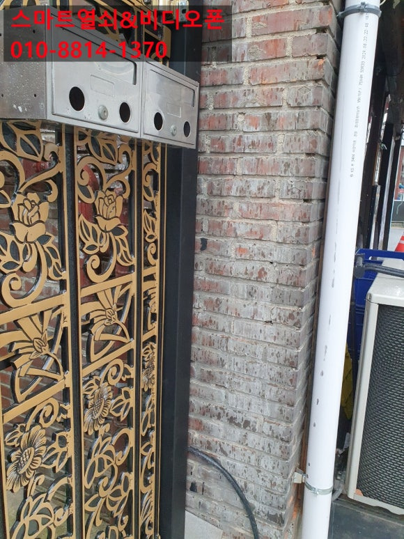 금일 설치는 명일동 빌라 대문 옆 기둥 비디오폰 설치 및 개폐기 연결 설치해
