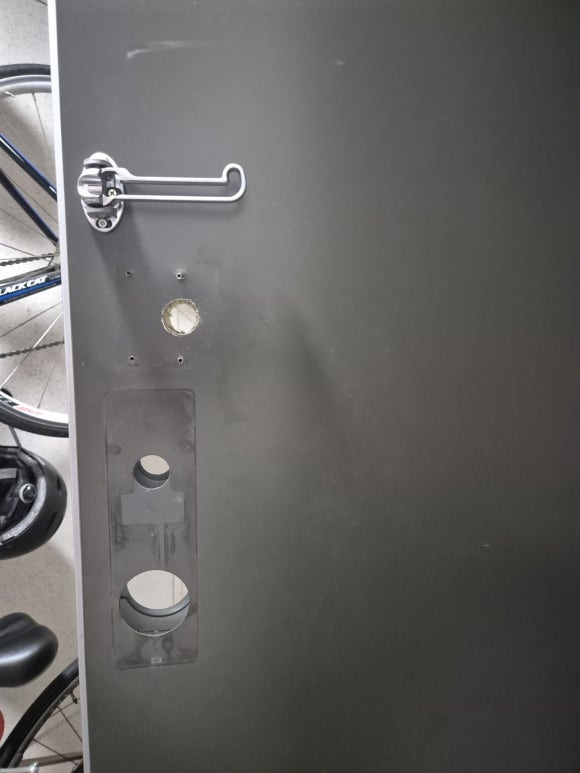 탈거해드리고 보강판으로 보조키 구멍을 가려 설치를 진행해 드렸습니다.